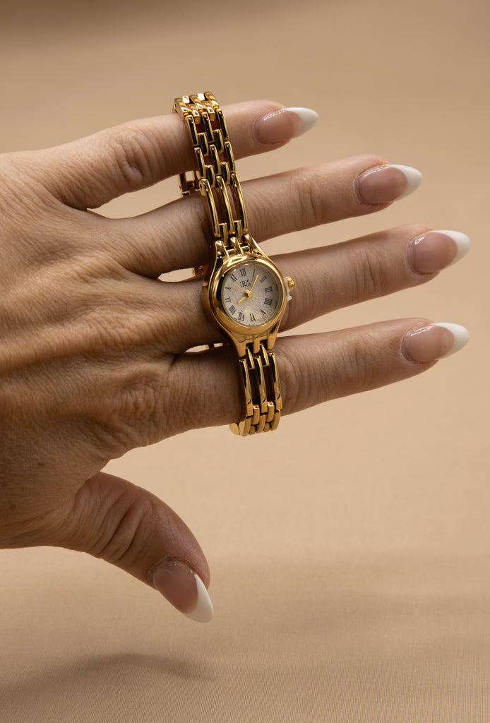 Powered by a reliable quartz analog movement, the Mary Gold offers precise timekeeping in a design that blends elegance and practicality. Whether worn for everyday sophistication or paired with evening attire, this watch adds a touch of classic glamour to any look.