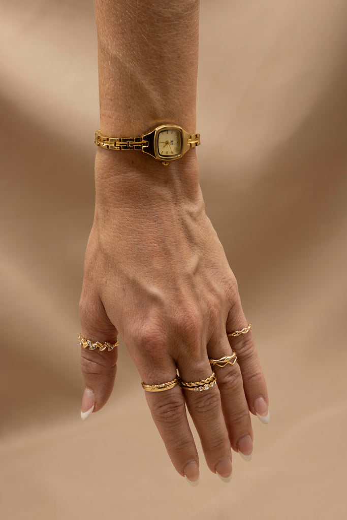 Elevate your everyday style with the timeless elegance of the Casablanca Mist watch. Crafted from premium stainless steel that won’t tarnish, this gold-tone timepiece blends vintage charm with modern sophistication. The unique square case is paired with a luminous dial, sleek minimalist markers, and a polished link bracelet designed for lasting comfort and durability.